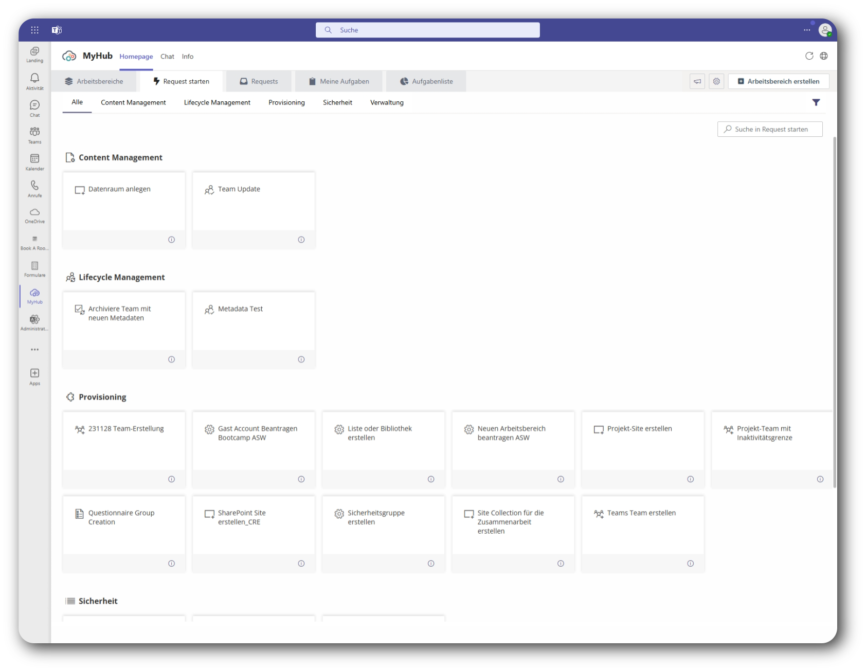 Organisiere und verstehe Deine Ressourcen und greife zentral darauf zu. Lerne MyHub kennen, Deinen zentralen One-Stop-Shop zur Verwaltung bestehender Power Platform-Objekte und Microsoft 365-Arbeitsbereiche — alles über die intuitive, direkt in Microsoft Teams integrierte App!